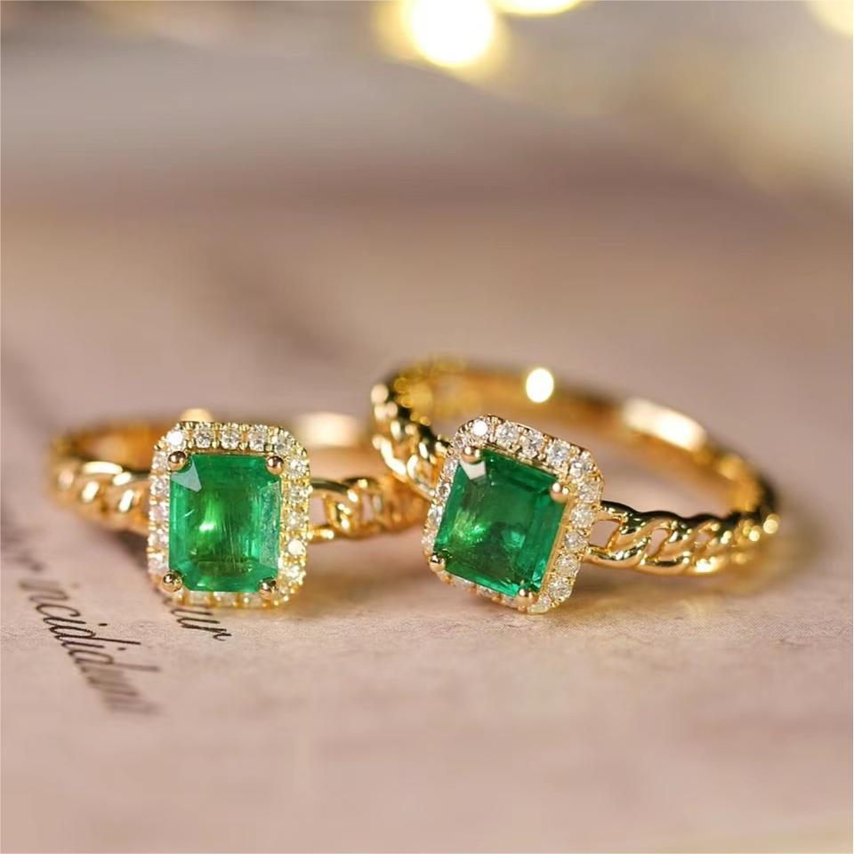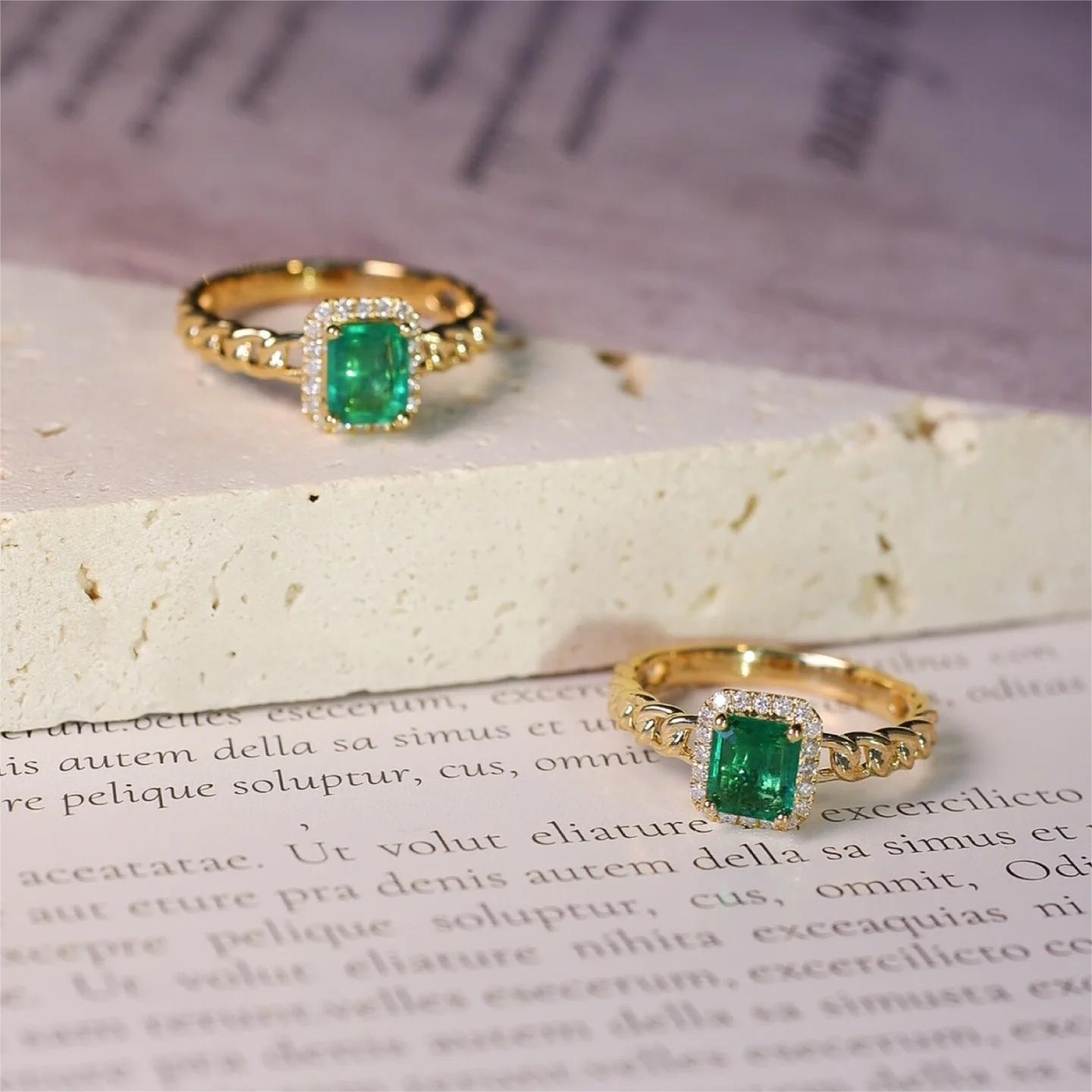 (定制款)2025金六福KSF祖母绿系列 2克拉 祖母绿倾城绕指柔微镶女戒 KSF-DK1002B