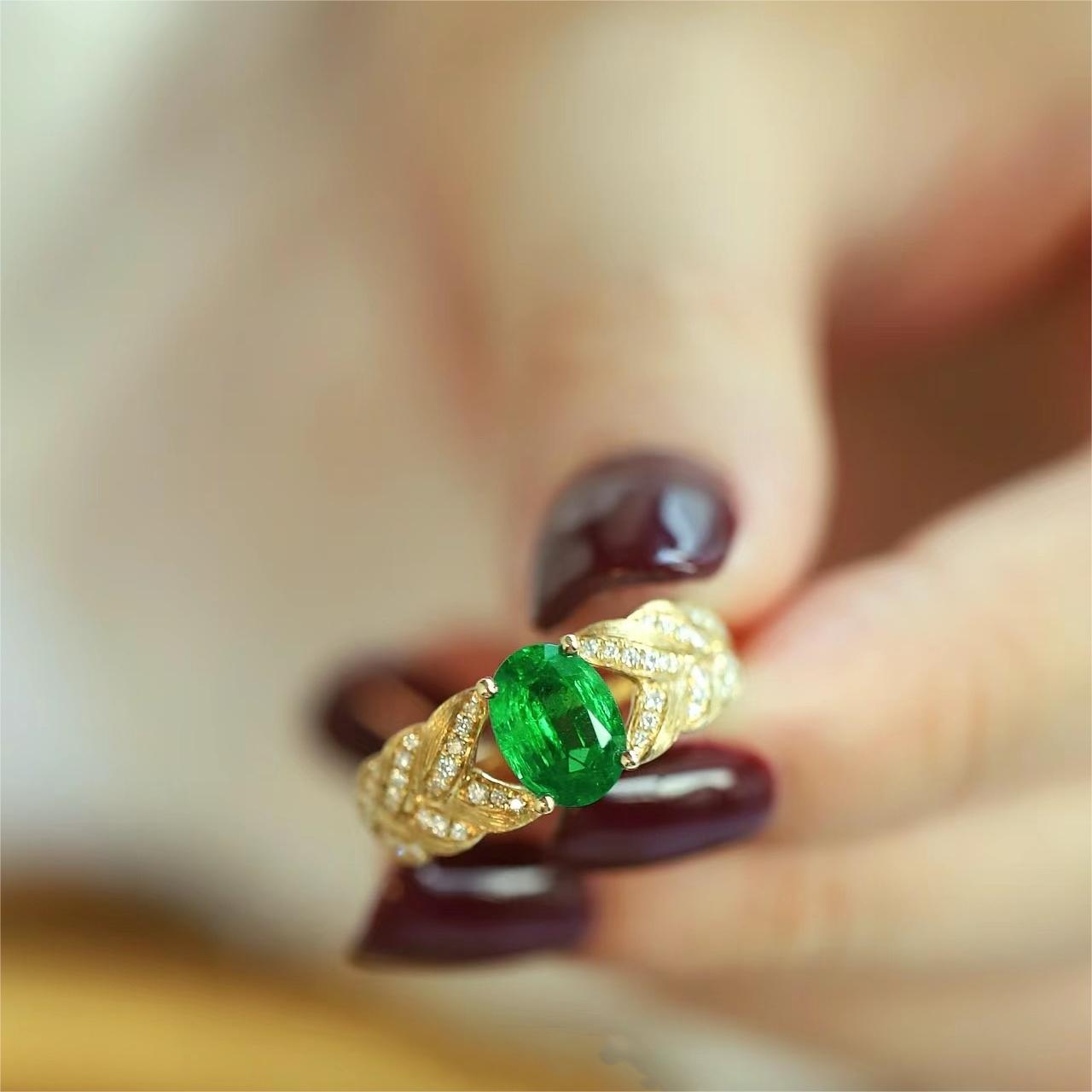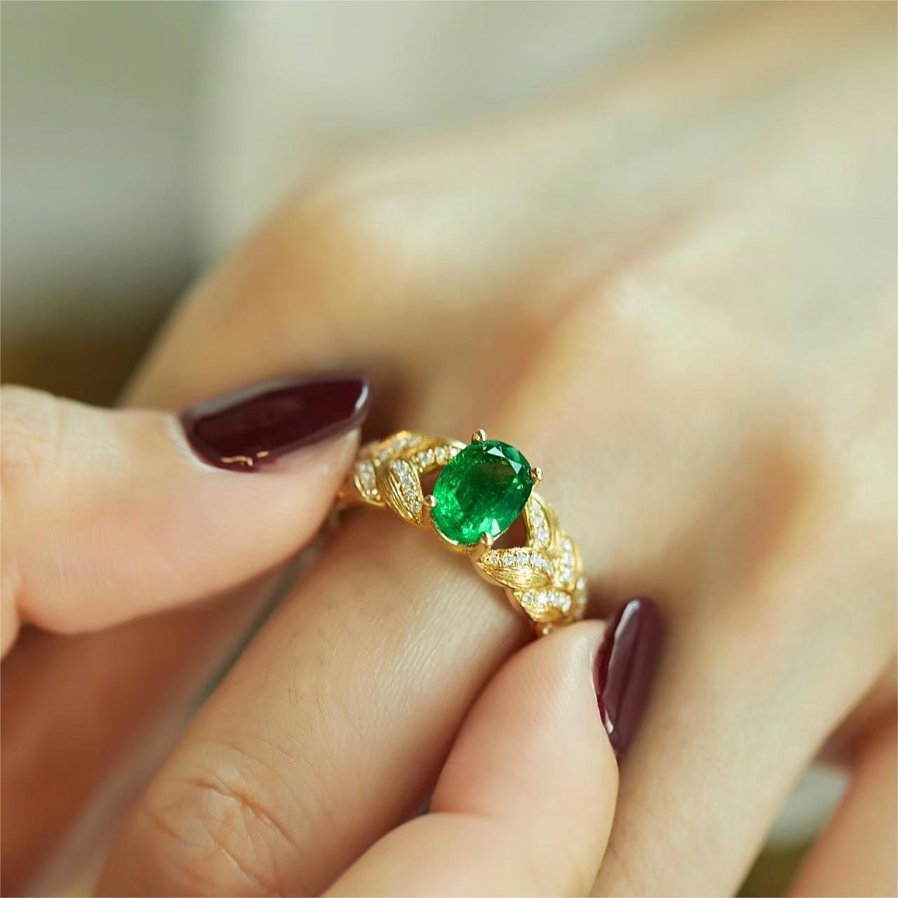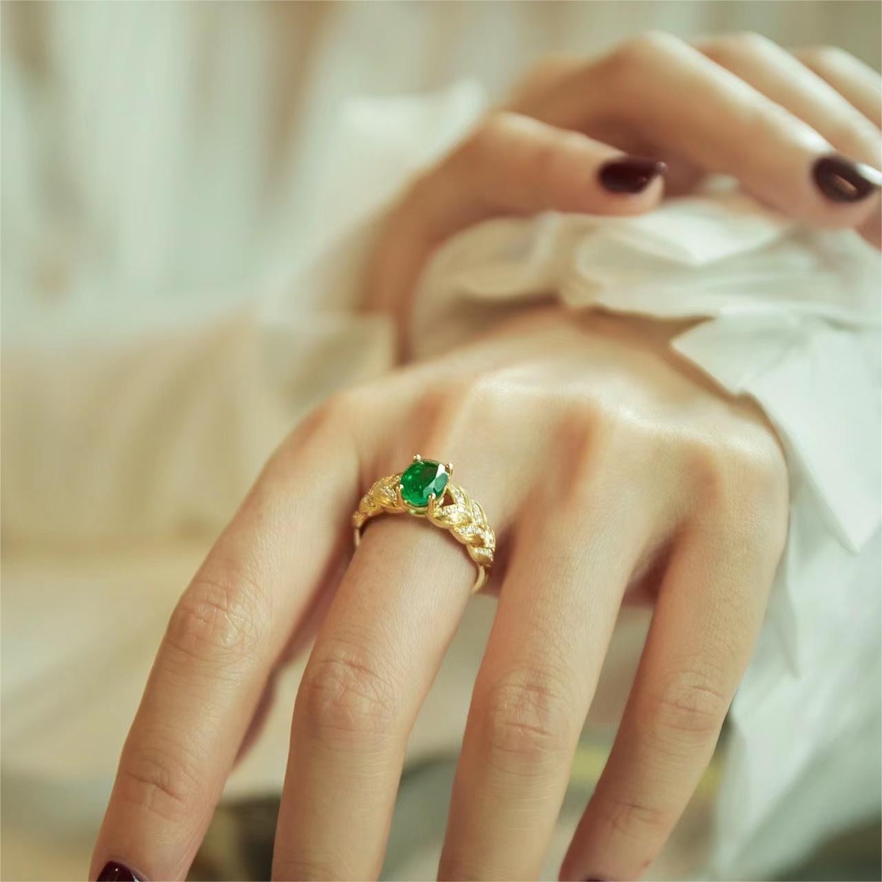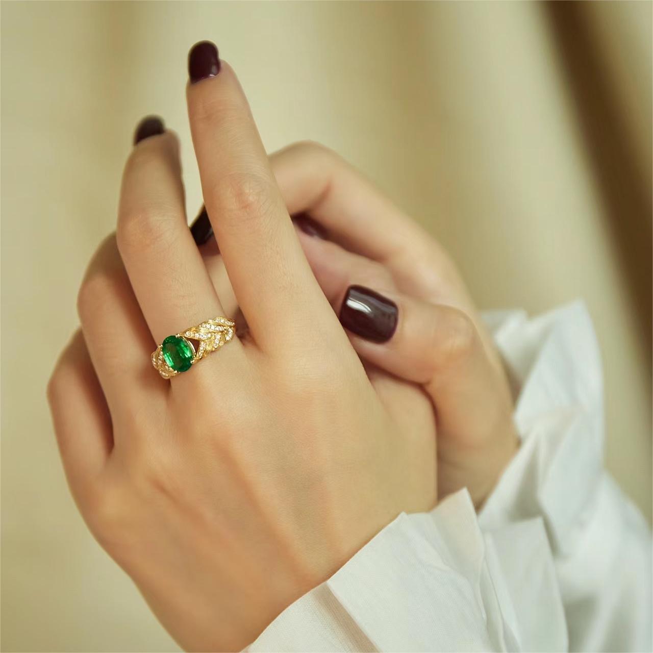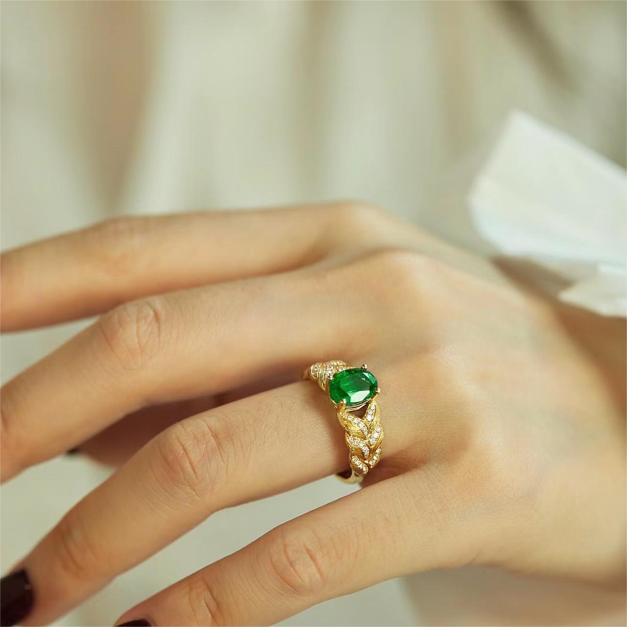(定制款)2025金六福KSF祖母绿系列 2克拉 祖母绿麦穗四爪女戒 KSF-DK1003B
