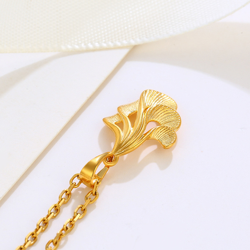新品矿金 金色凤尾吊坠(含链) 一口价