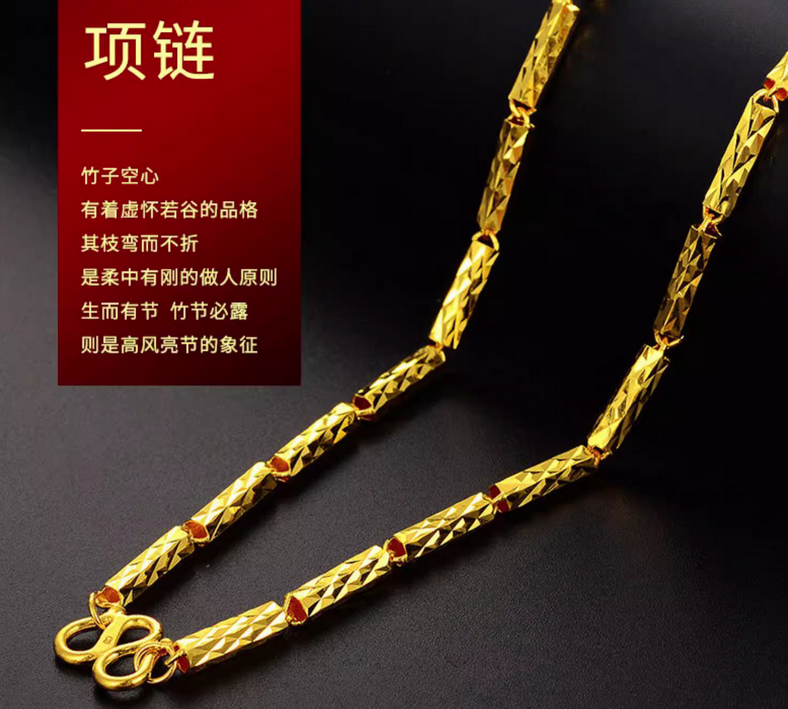 足金999竹节转运珠金项链