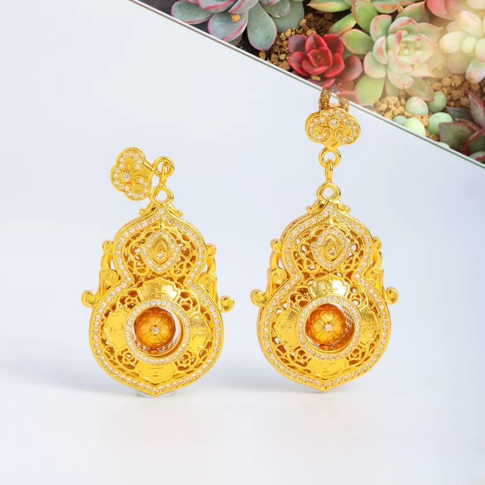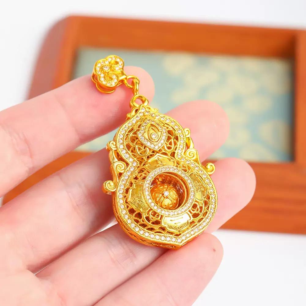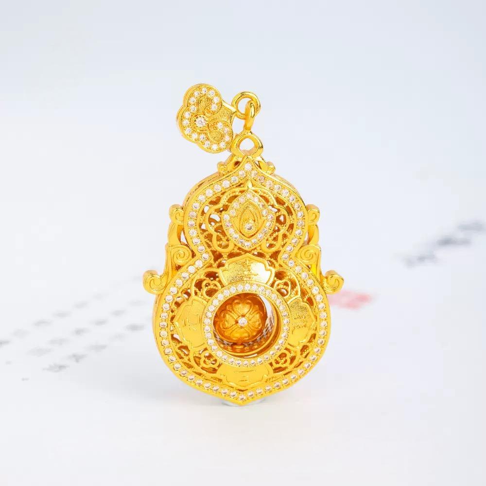 (推荐)新品矿金 高定人生四美镂空葫芦如意绳挂坠(珍藏木盒版) 一口价