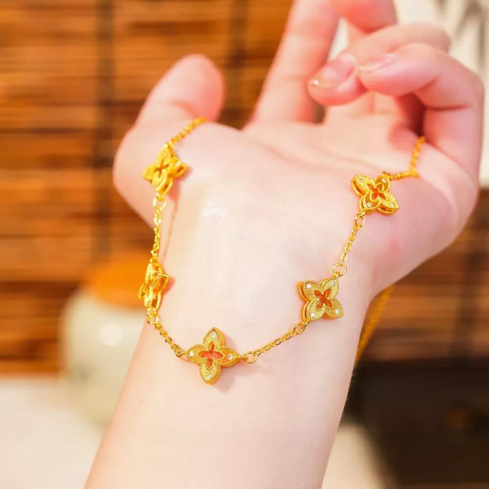新品矿金 镂空四叶花手链 一口价
