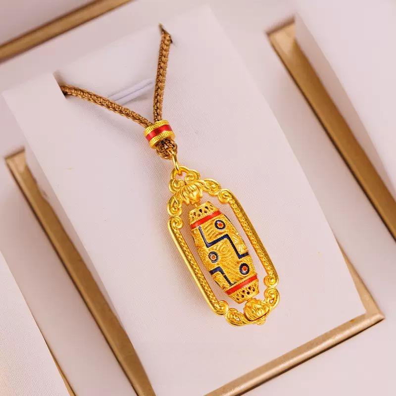新品矿金 古典天珠转经筒珐琅彩吊坠 一口价