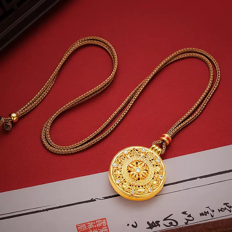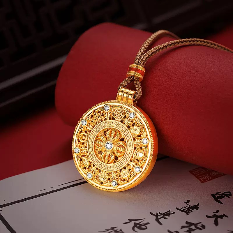 新品矿金 (磨砂)复古花丝镂空八宝罗盘吊坠(珍藏版木盒) 一口价