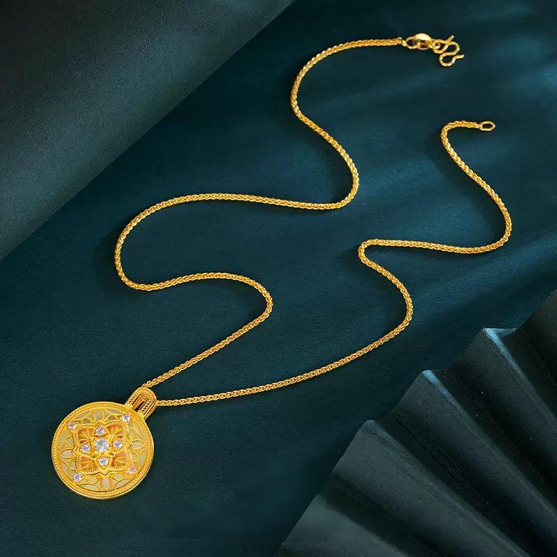 新品矿金 新中式点钻四叶花海吊坠(珍藏木盒版) 一口价