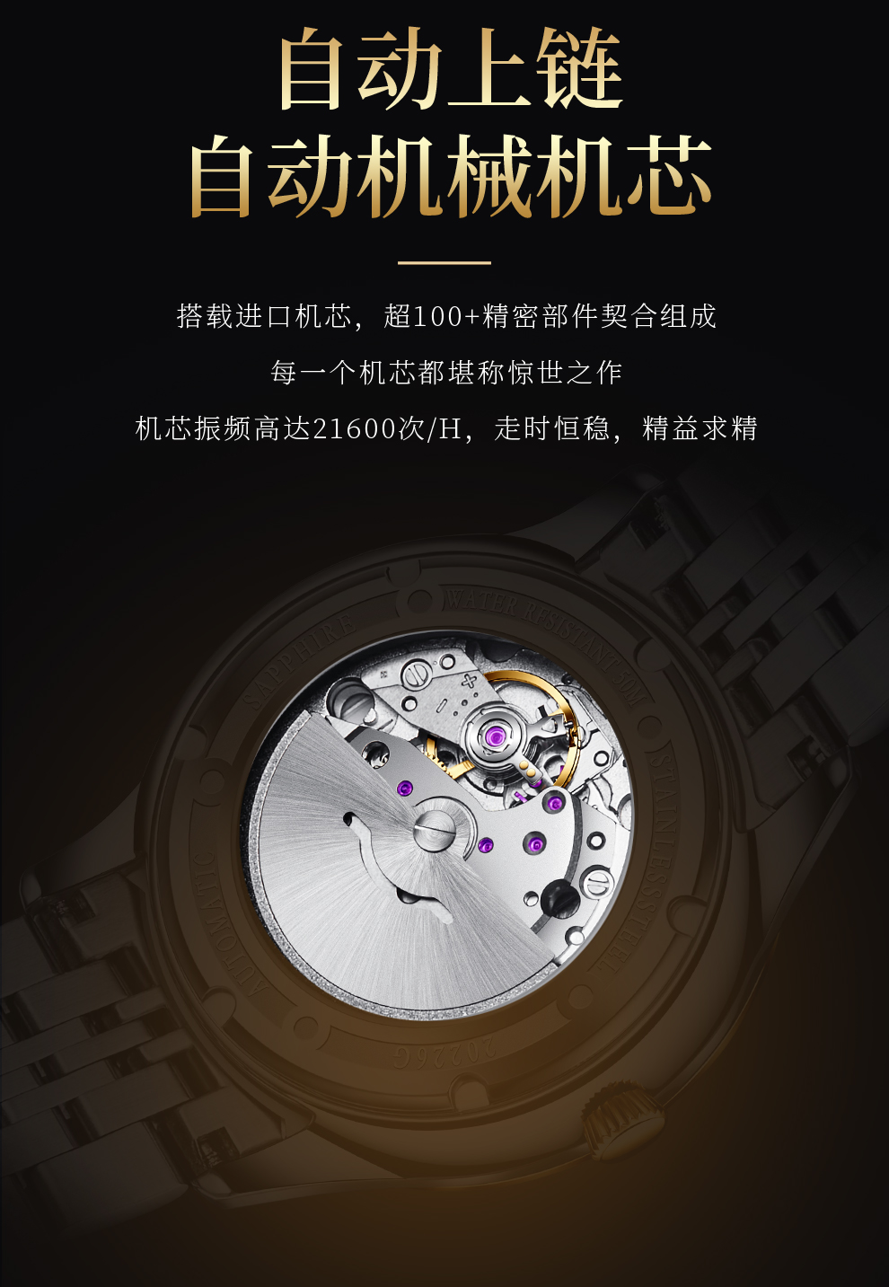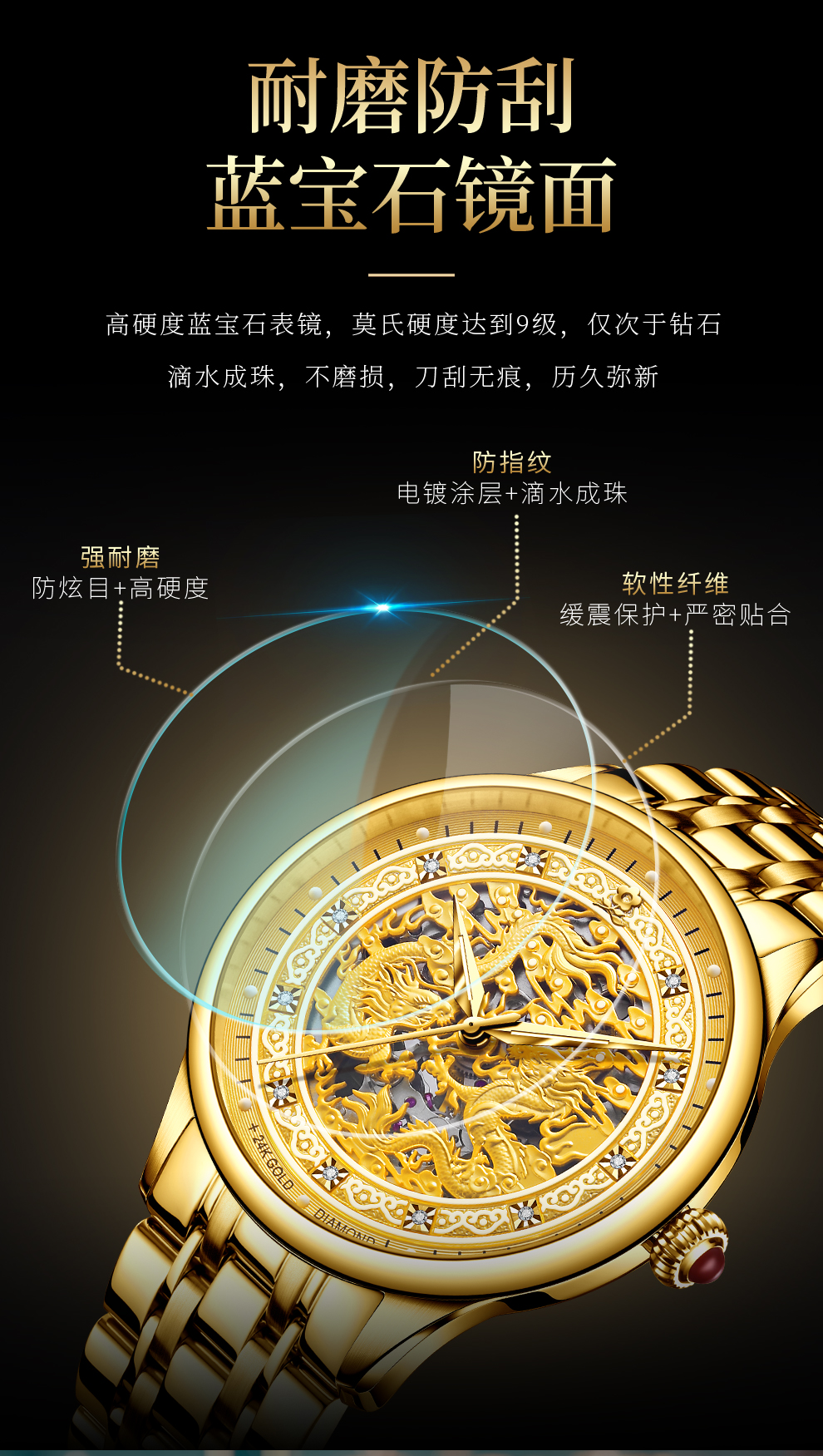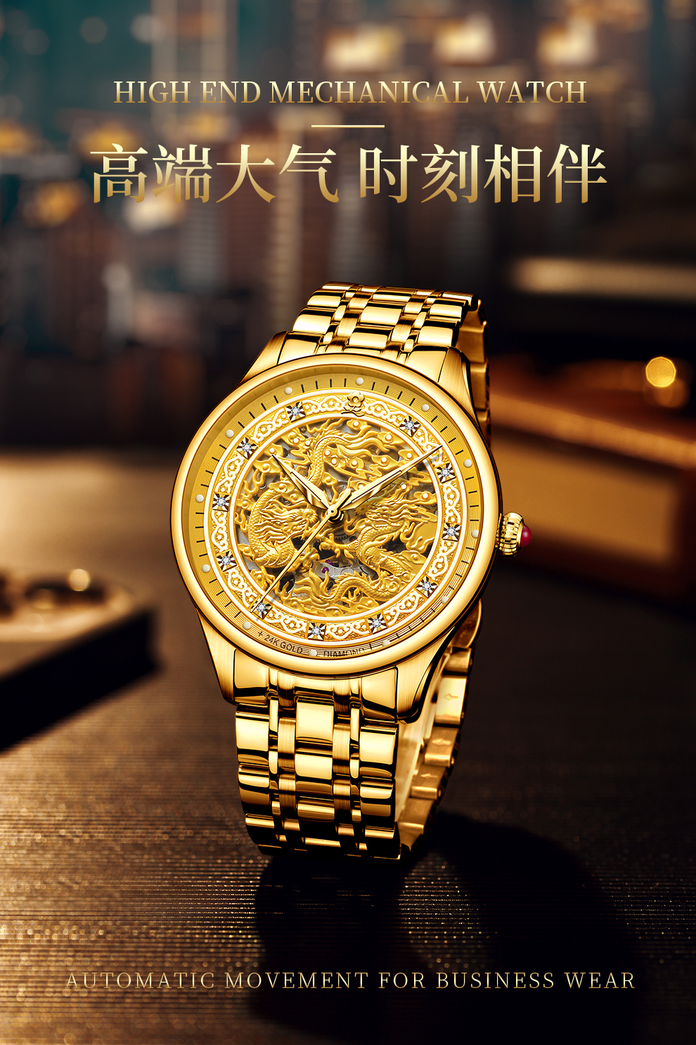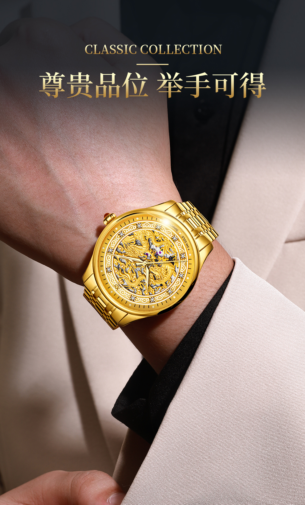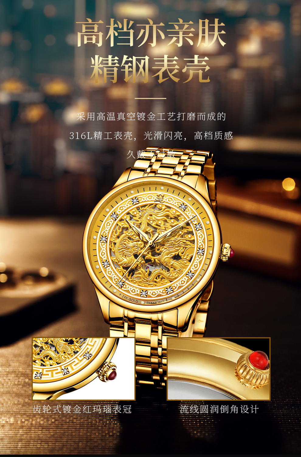 香港金六福KSF&法国梦特娇联名款-盛世飞龙 真金真钻 夜光全自动机芯 男士商务金表
