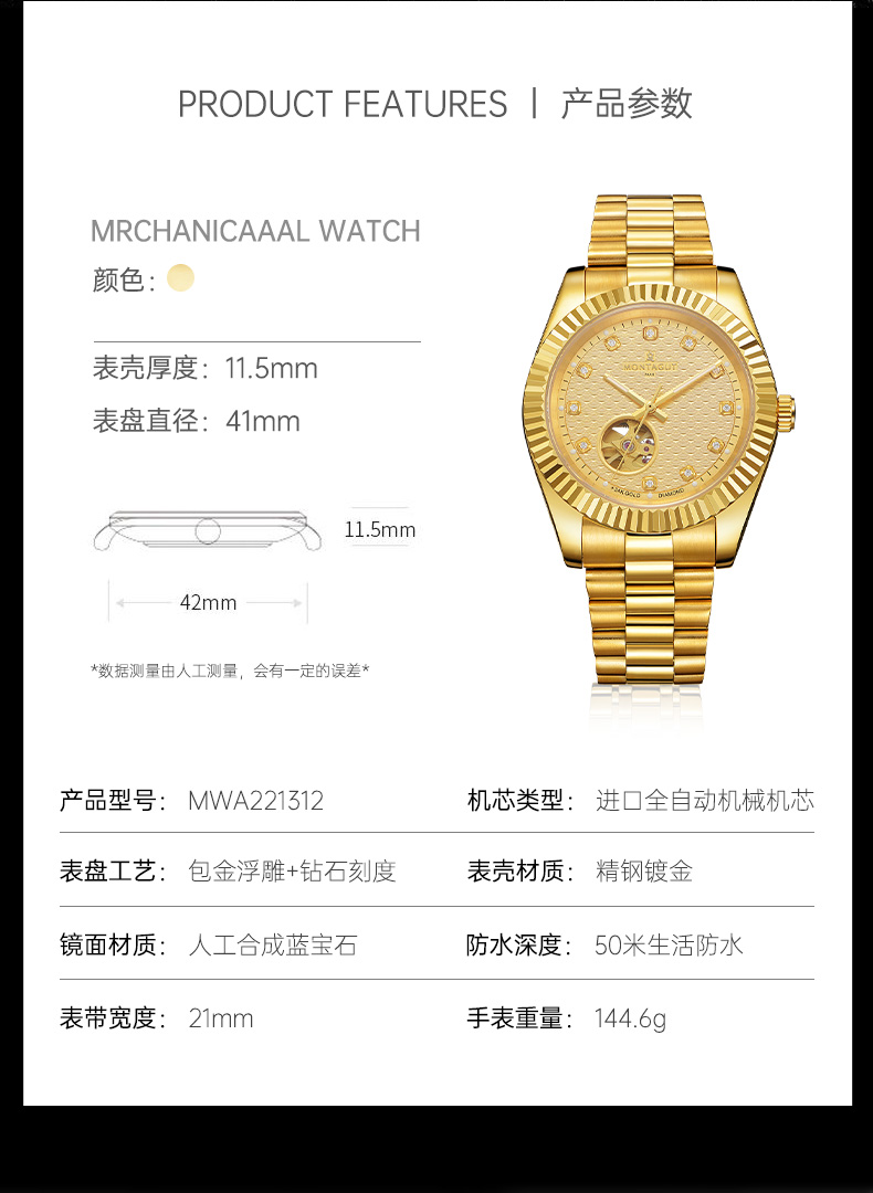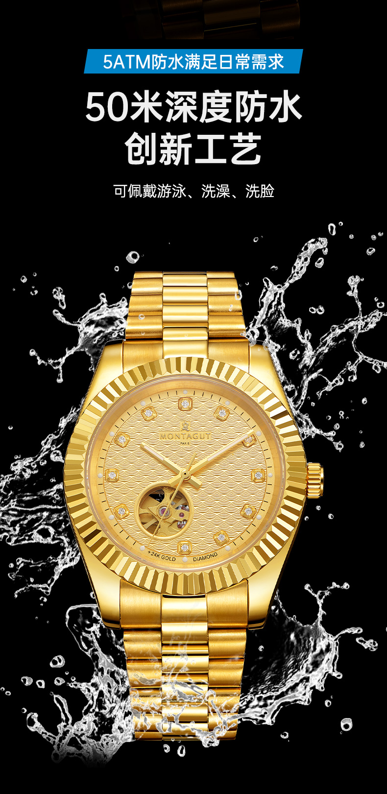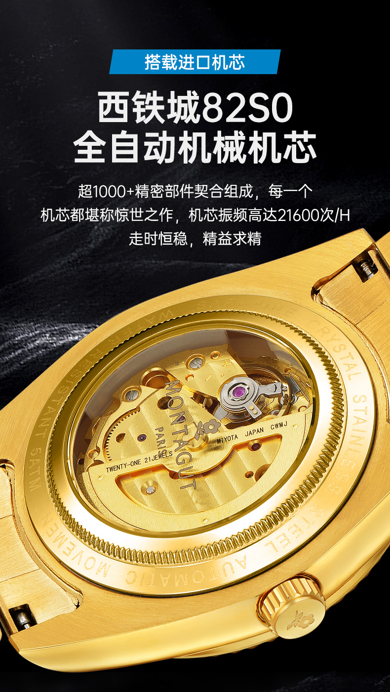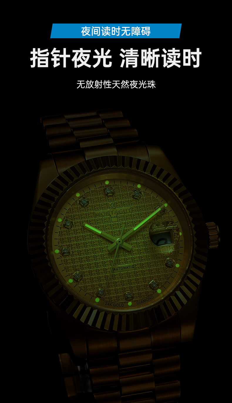 香港金六福KSF&法国梦特娇联名款-瑞气祥云 真金真钻 夜光全自动机芯 男士商务金表