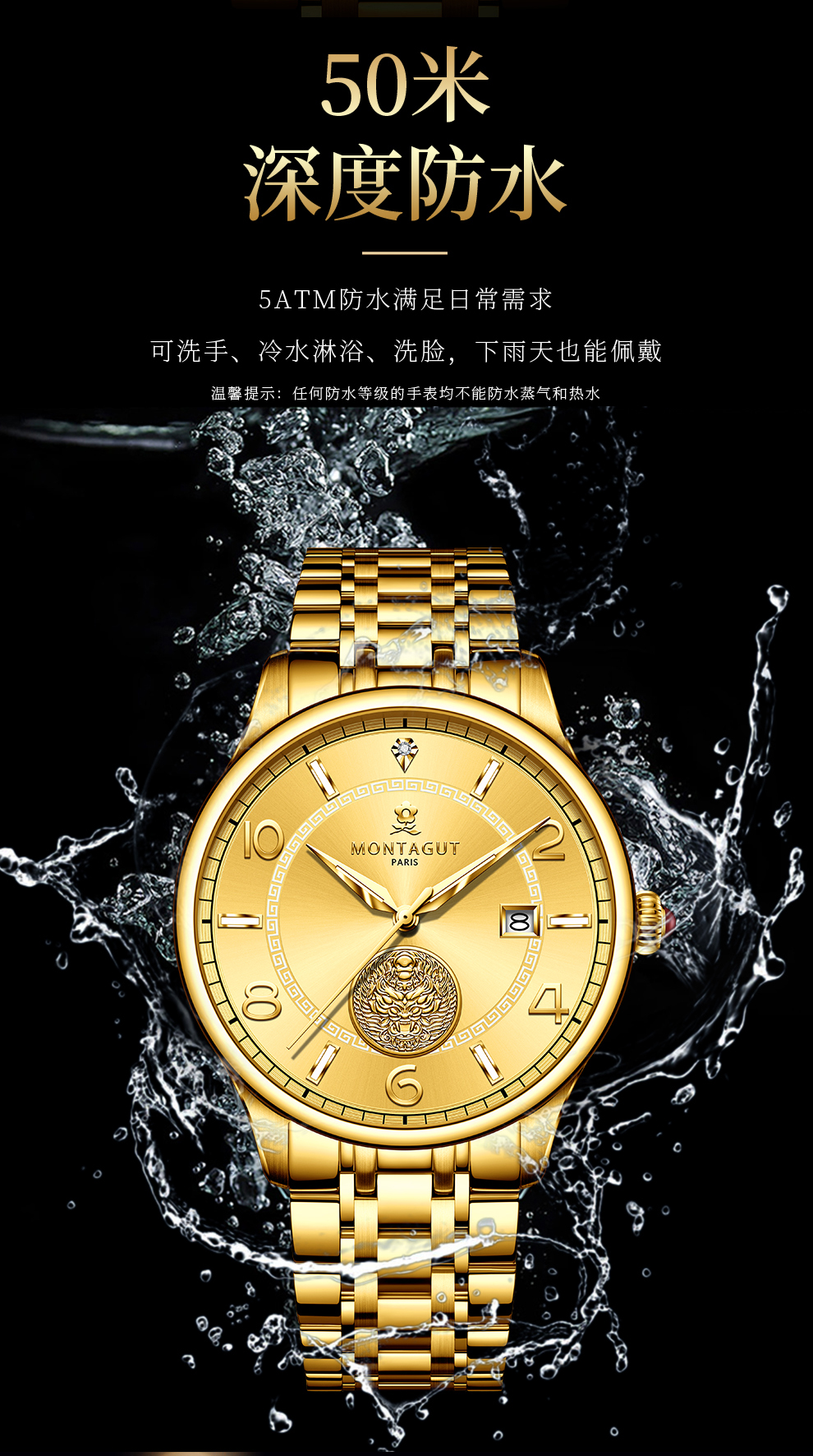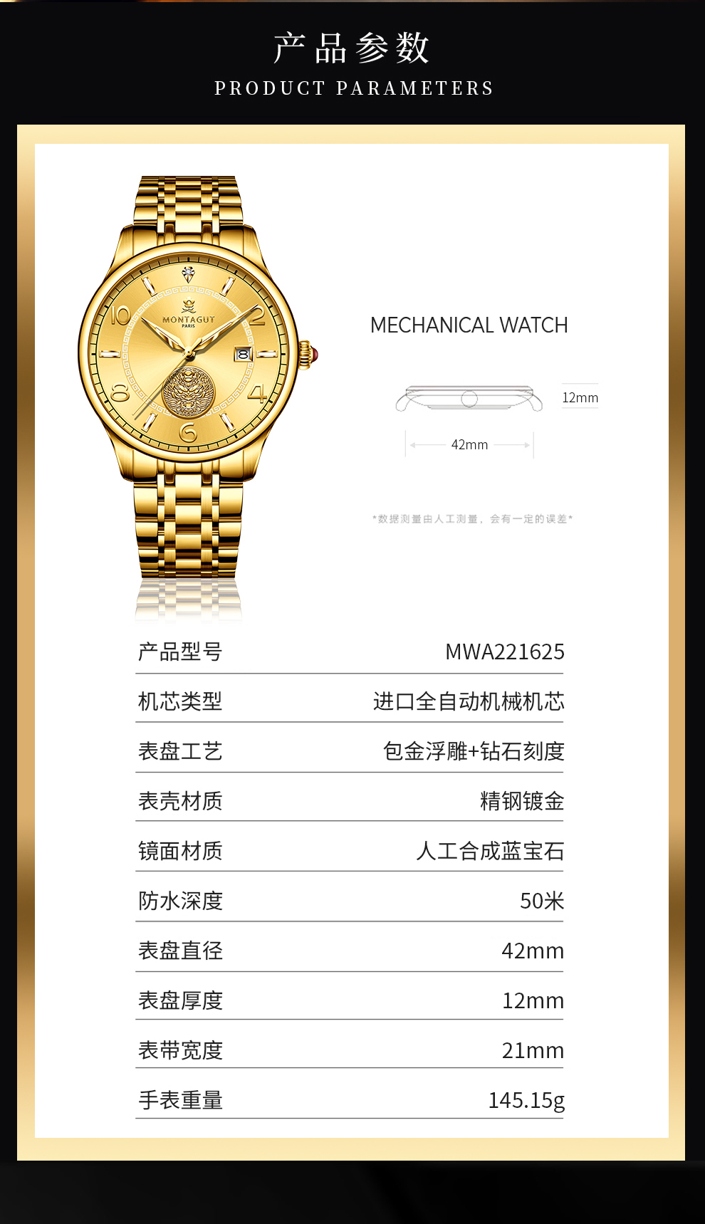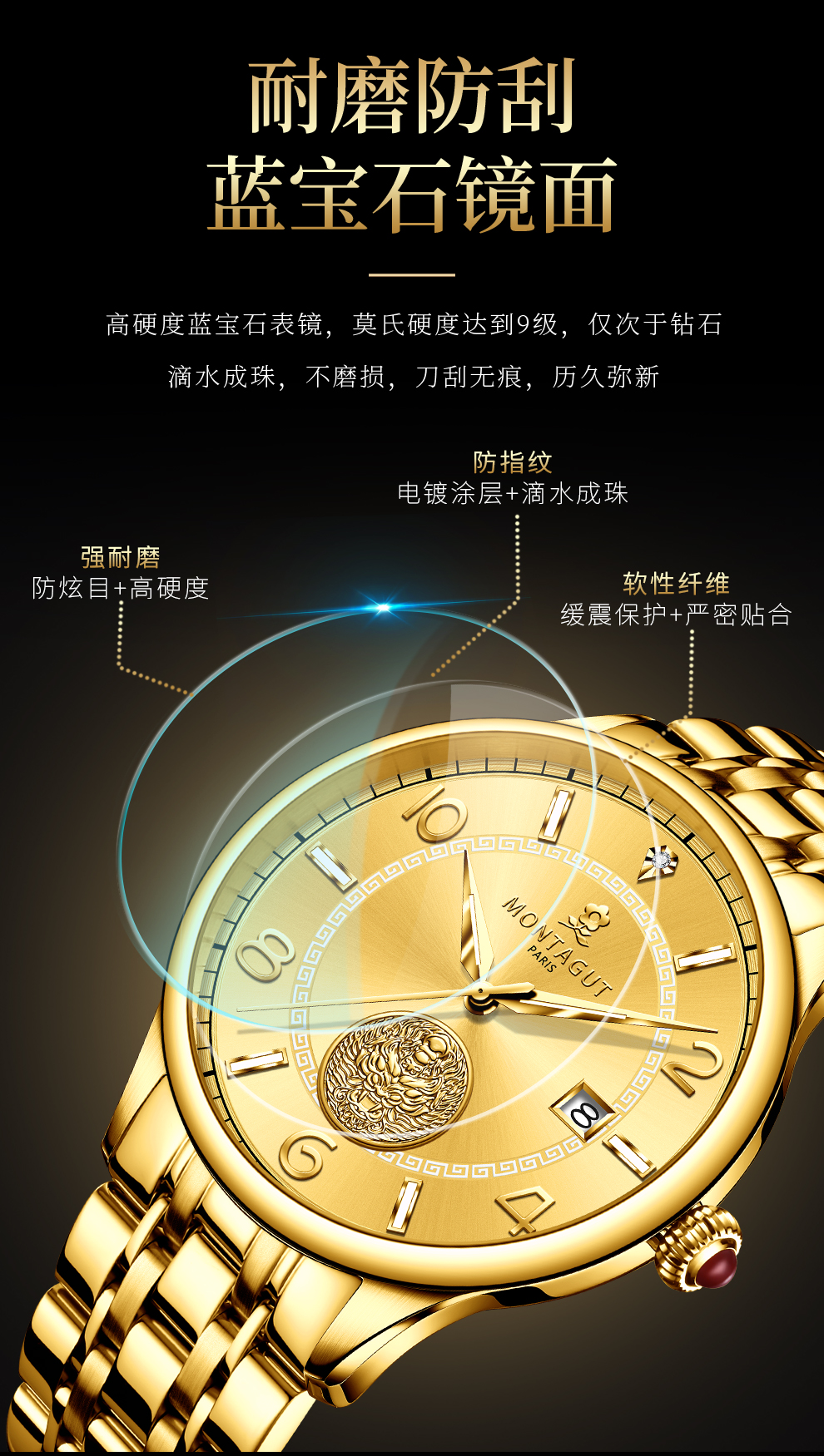 香港金六福KSF&法国梦特娇联名款-祥瑞麒麟 真金真钻 夜光全自动机芯 男士商务金表