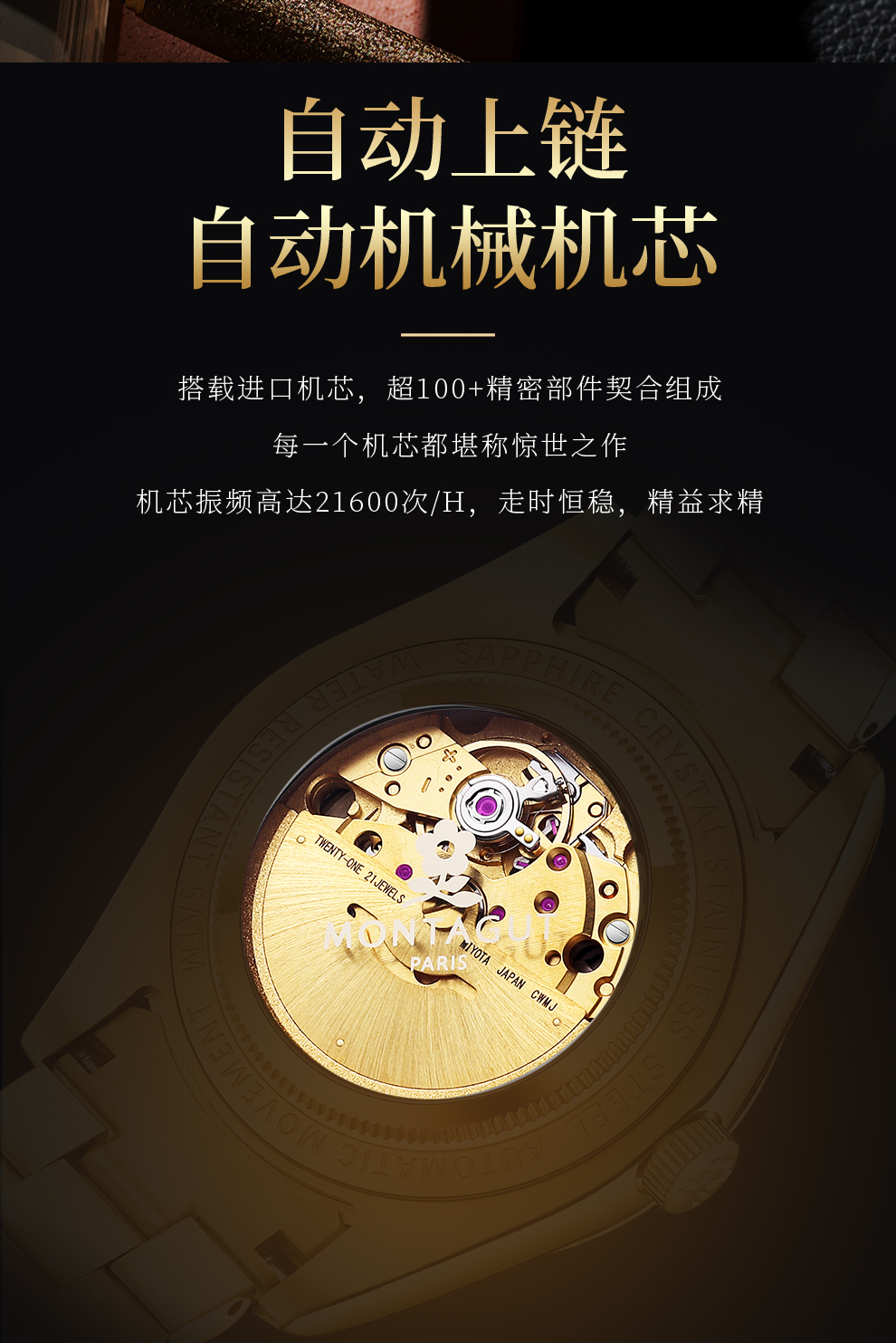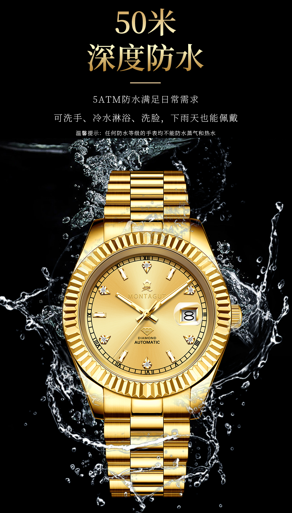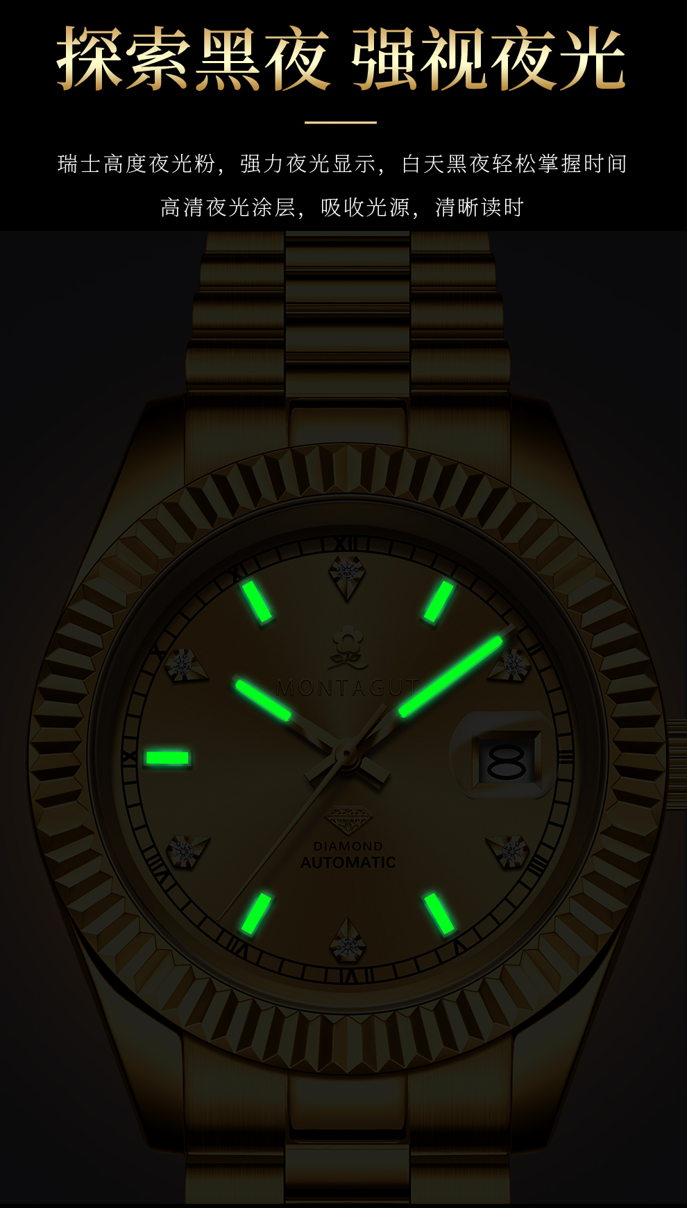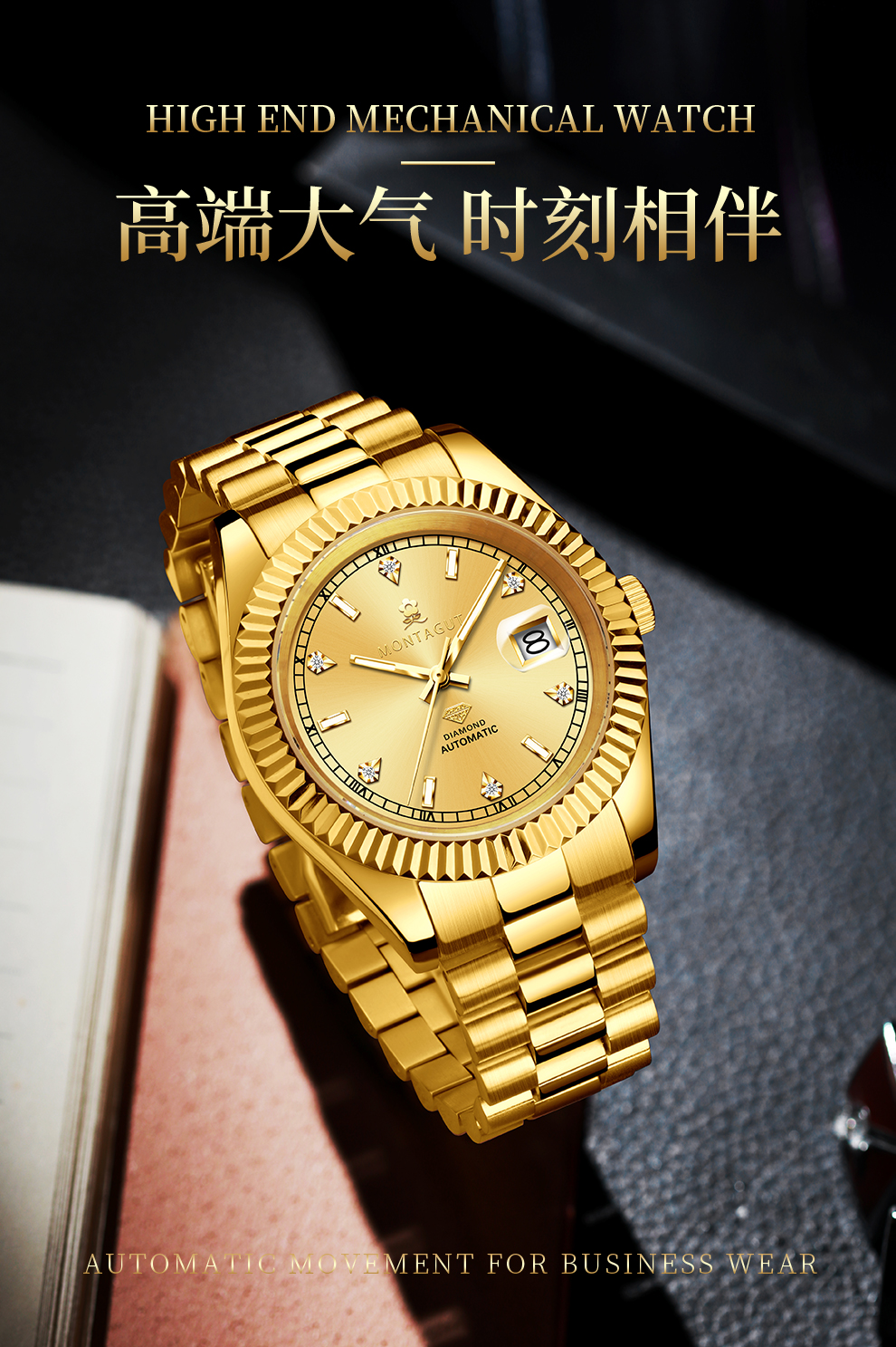 香港金六福KSF&法国梦特娇联名款-六合同风 真金真钻 夜光全自动机芯 男士商务金表(表盘绿)