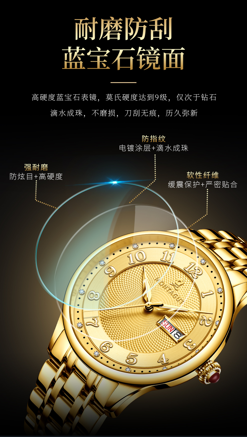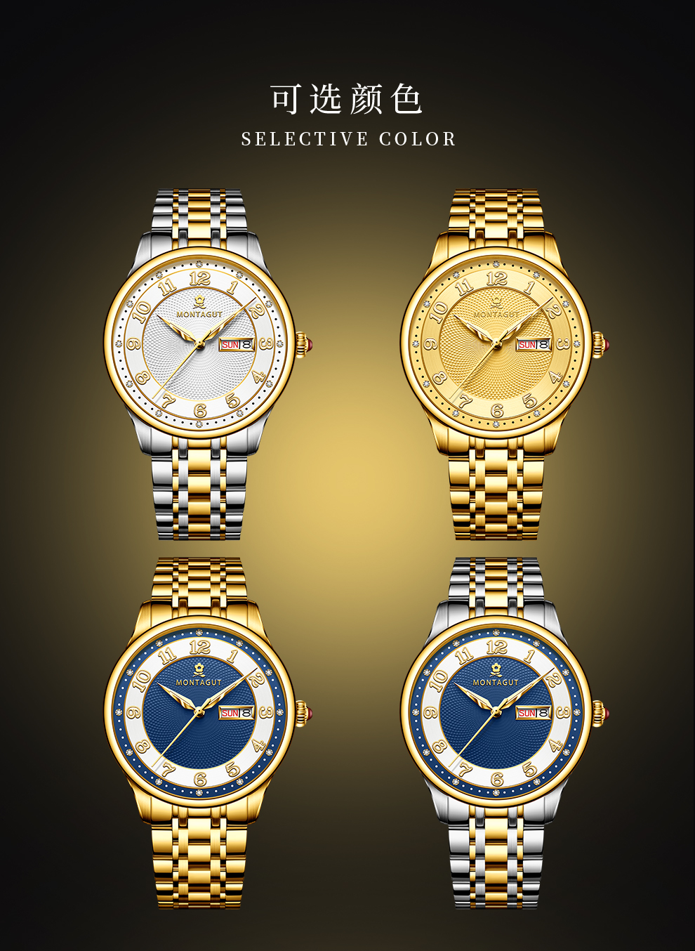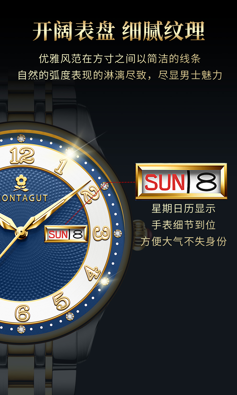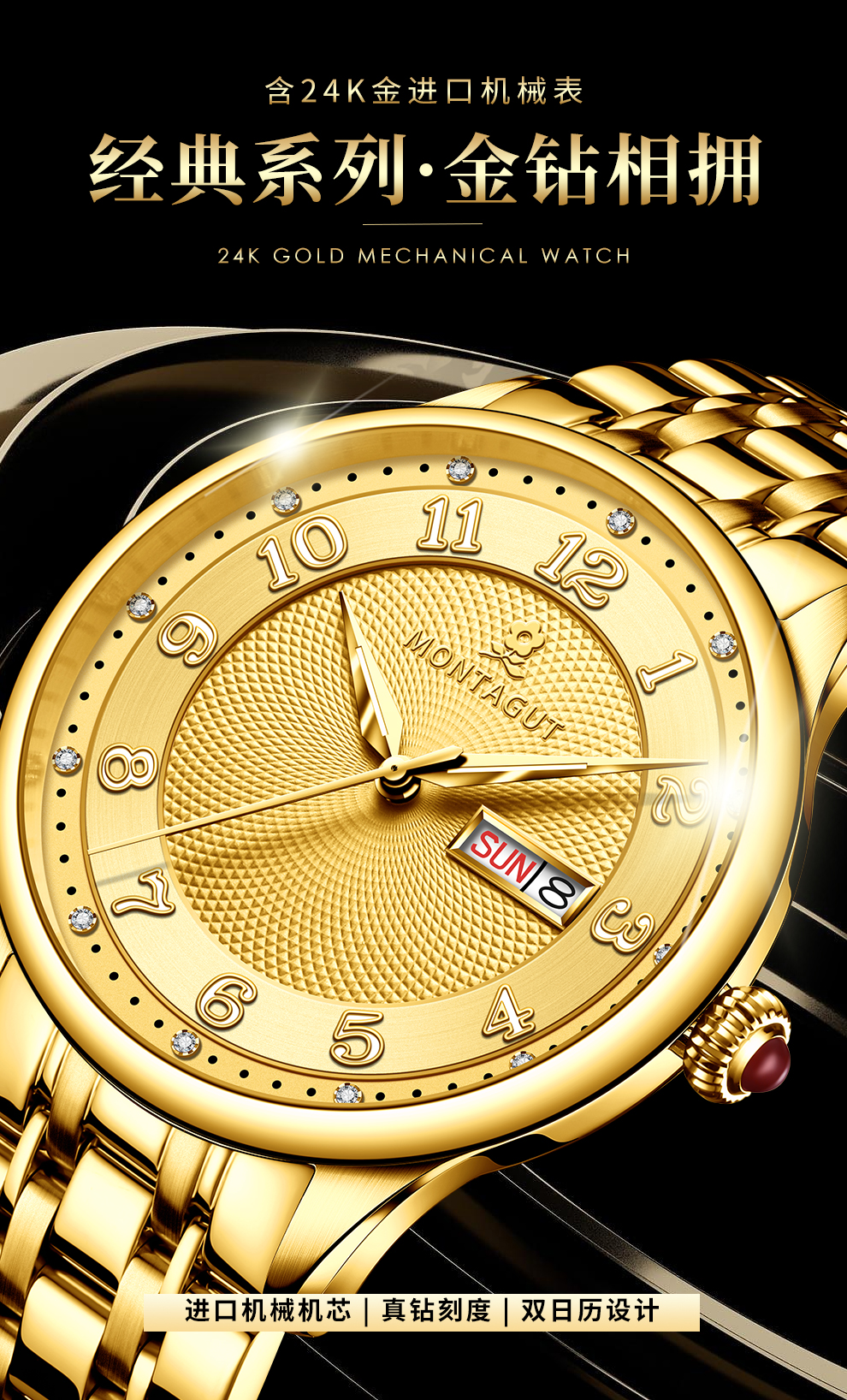 香港金六福KSF&法国梦特娇联名款-十二星辰 真金真钻 夜光全自动机芯 男士士商务金表(表盘蓝)(金)