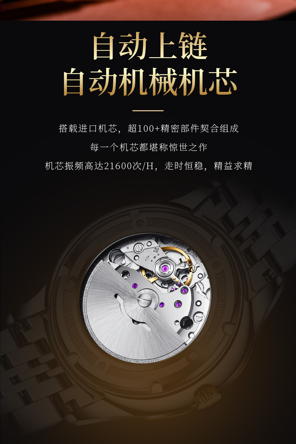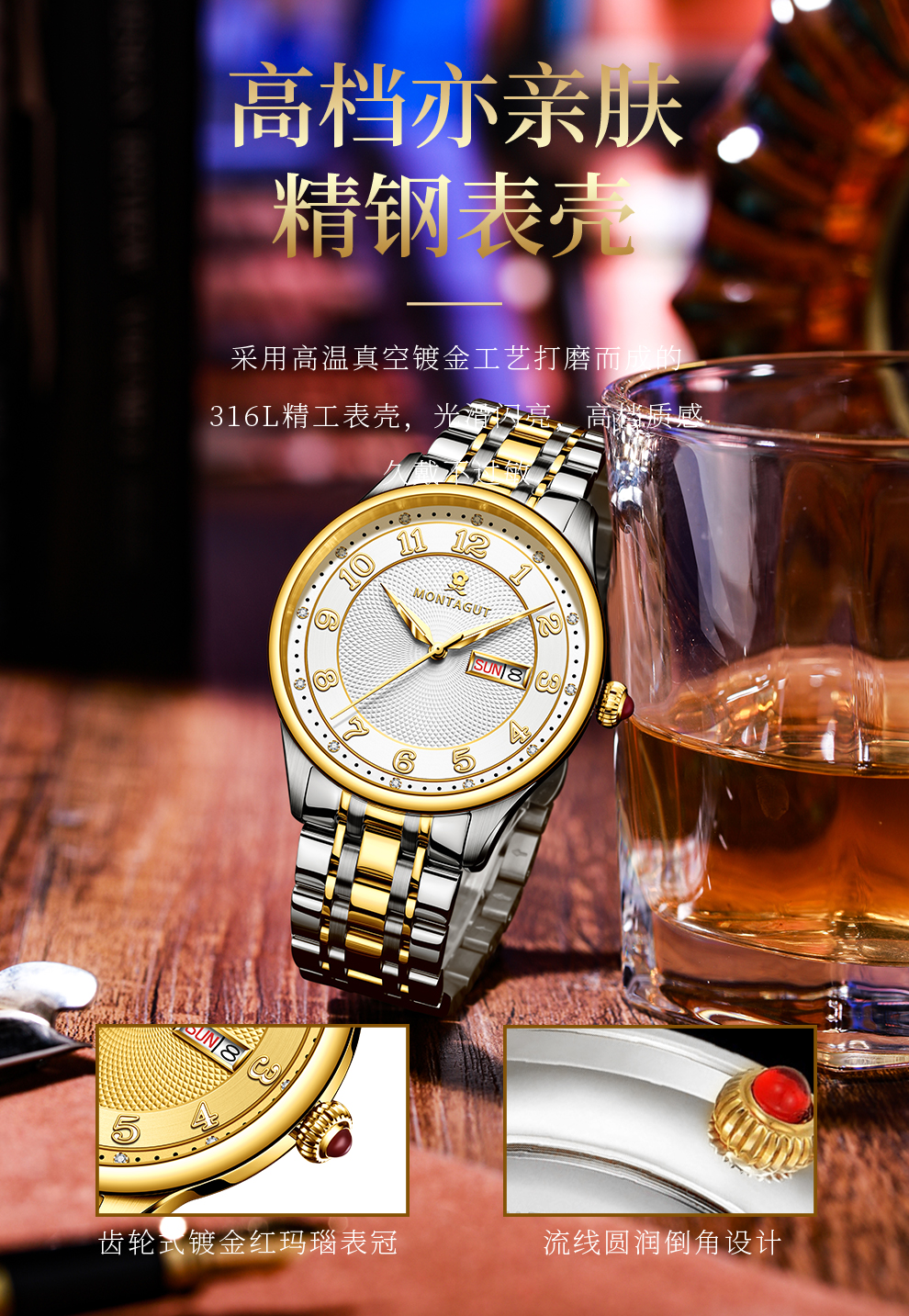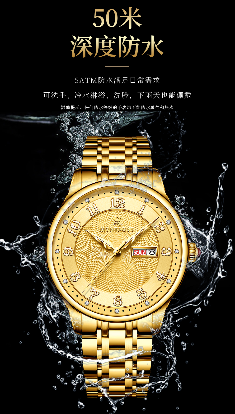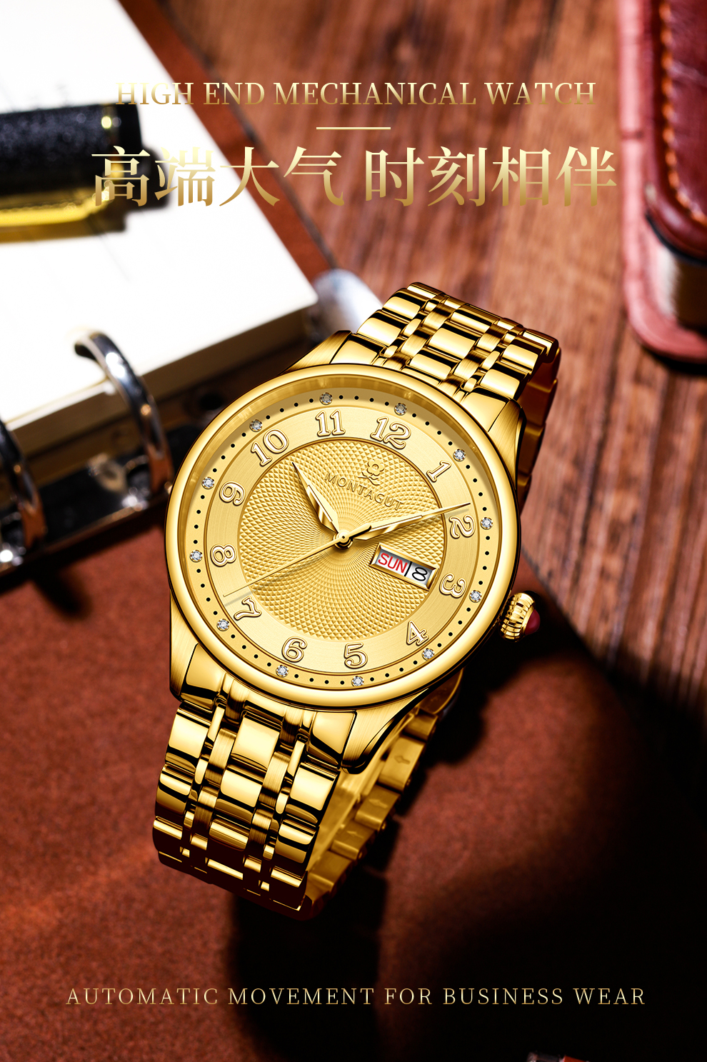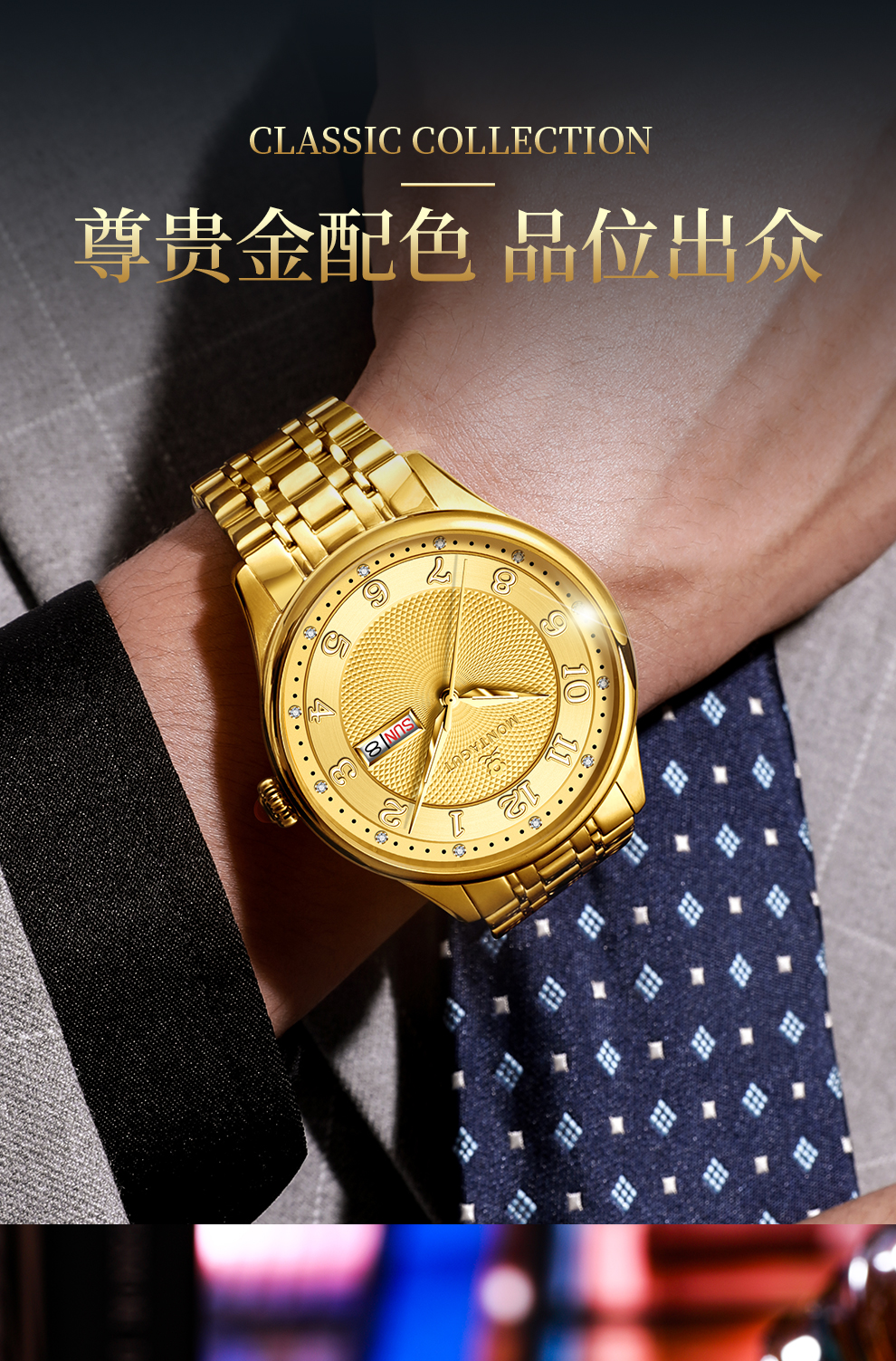 香港金六福KSF&法国梦特娇联名款-十二星辰 真金真钻 夜光全自动机芯 男士士商务金表(表盘蓝)(金)