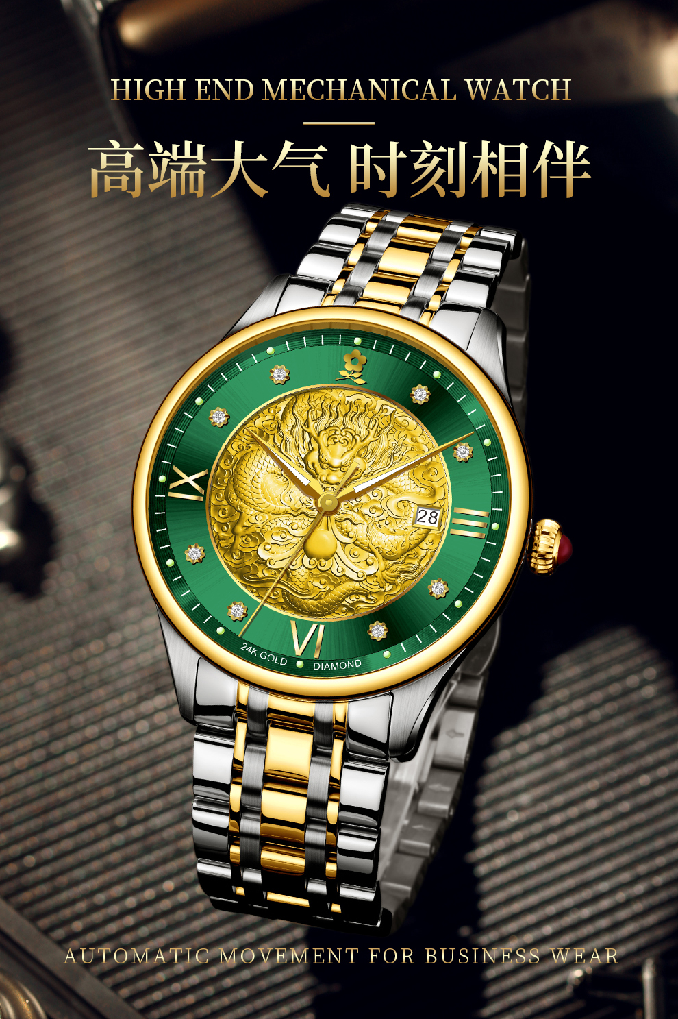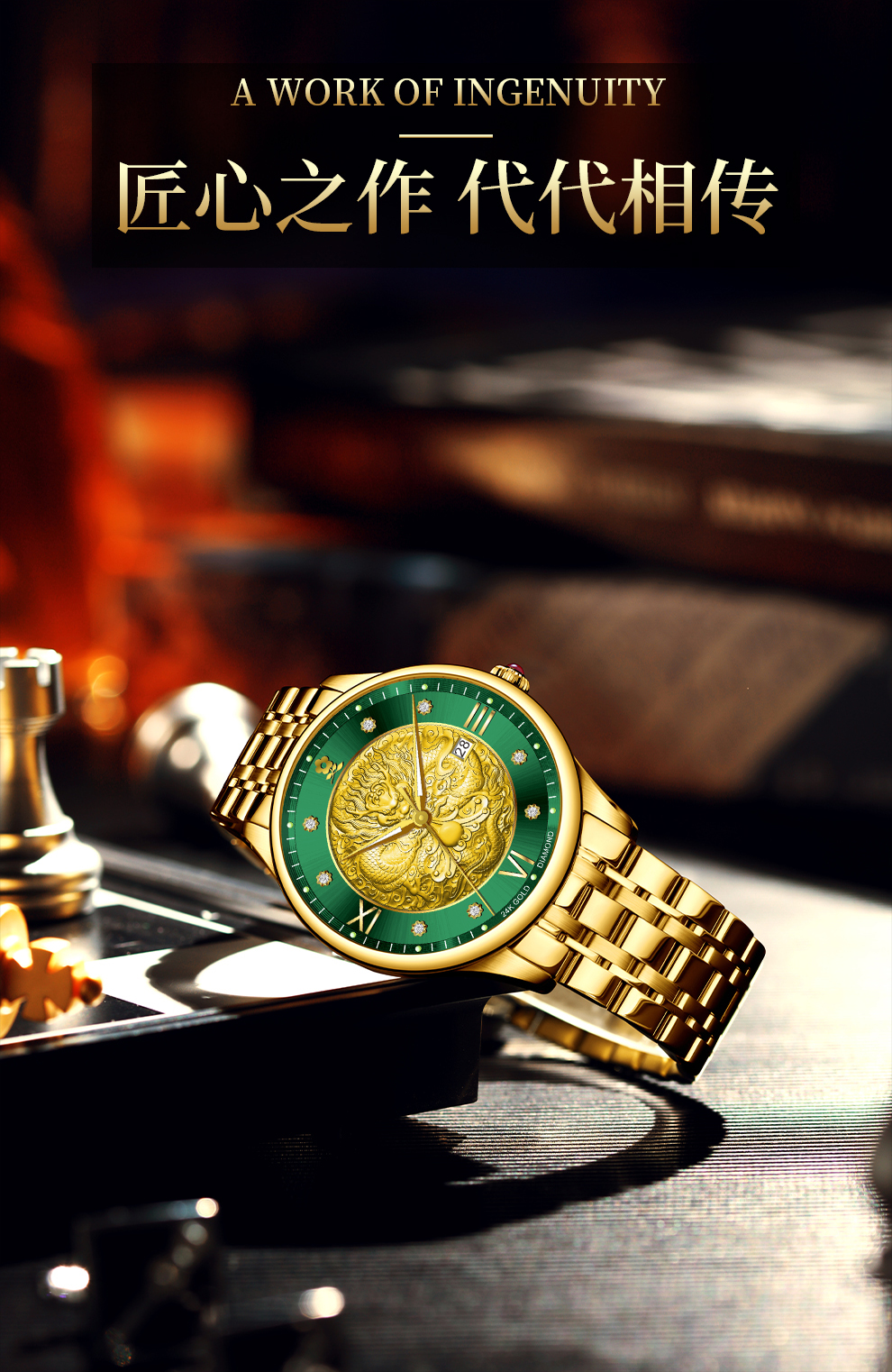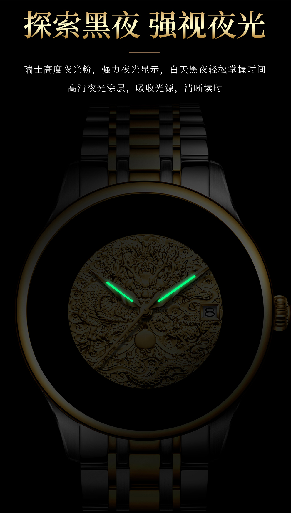 香港金六福KSF&法国梦特娇联名款-龙行天下 真金真钻 夜光全自动机芯 男士士商务金表(金)