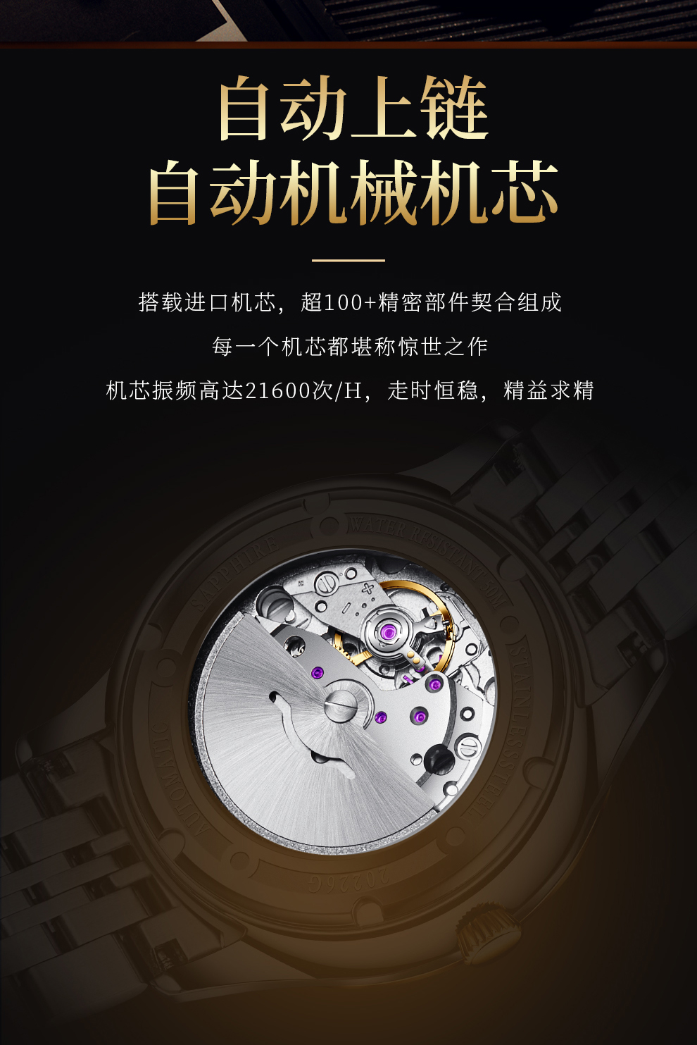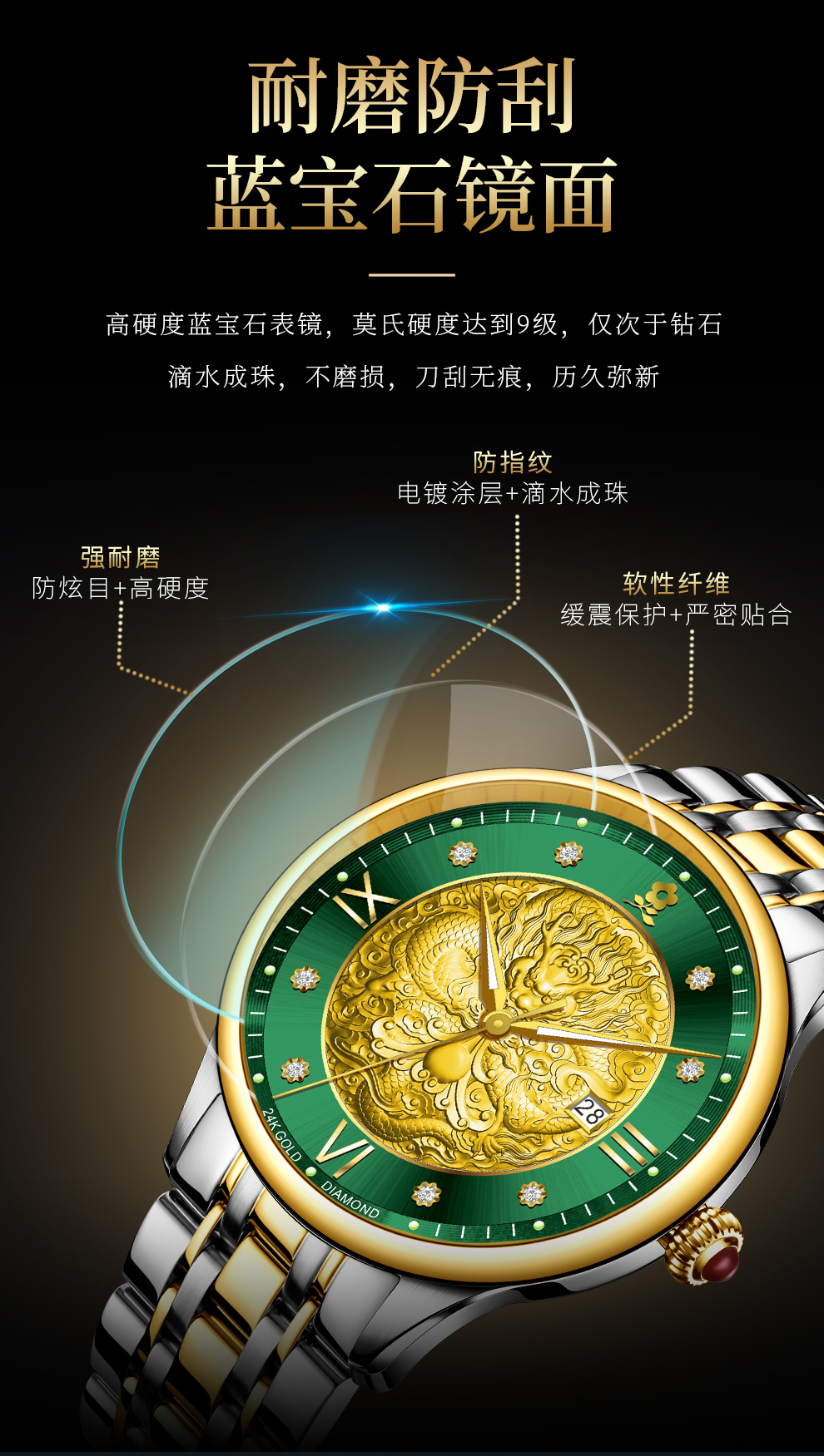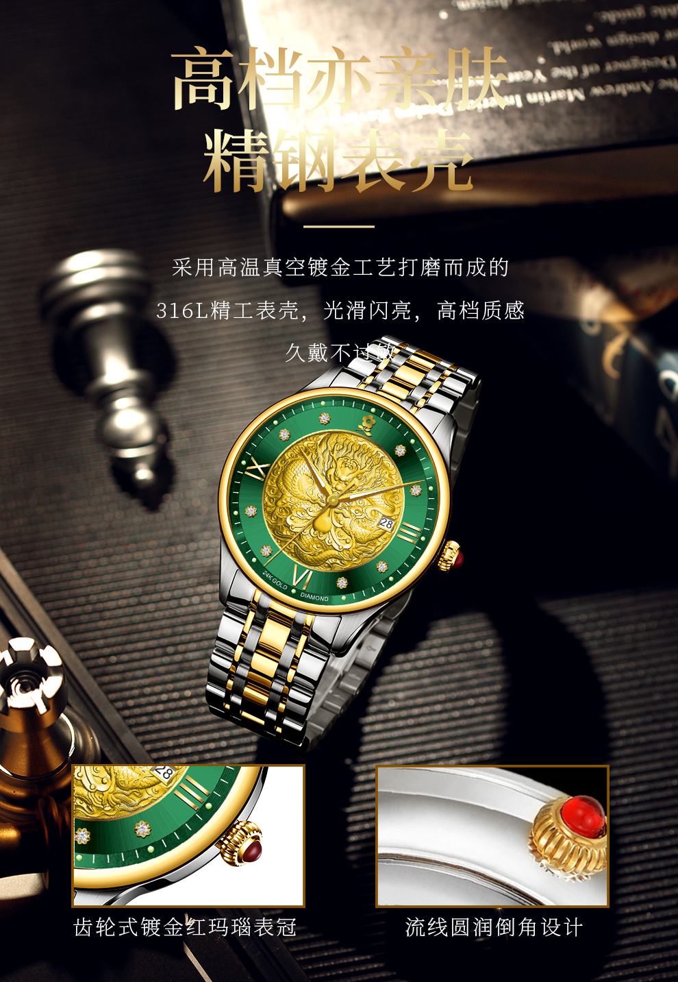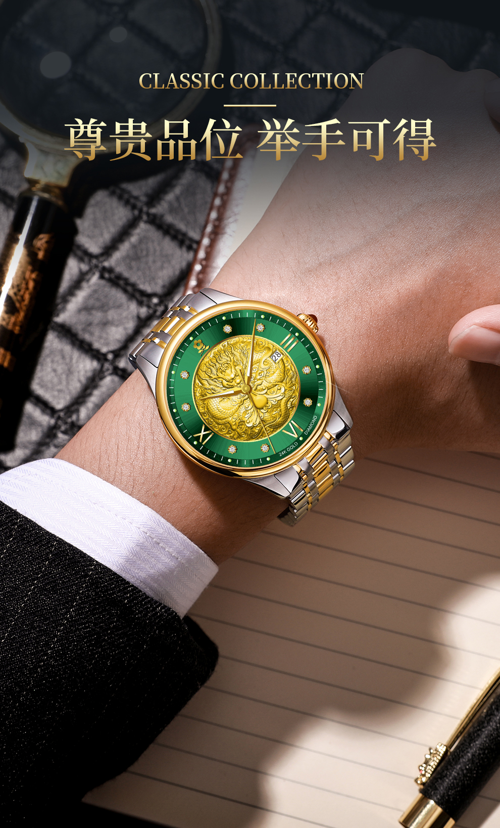 香港金六福KSF&法国梦特娇联名款-龙行天下 真金真钻 夜光全自动机芯 男士士商务金表(金)